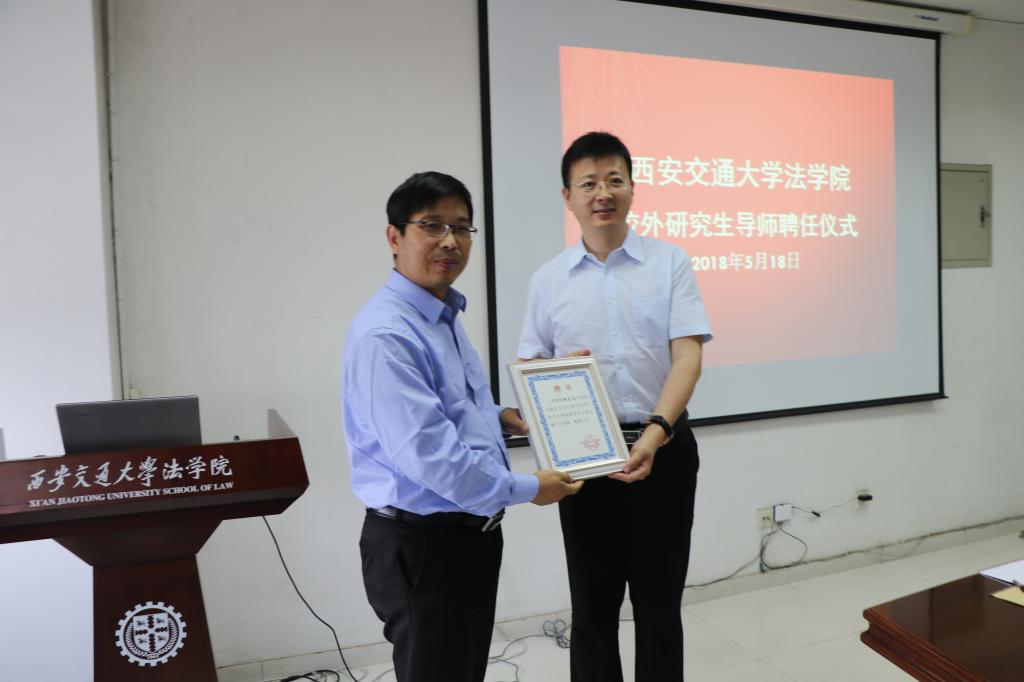2018年5月18日下午,宝威体育宝威体育法律硕士研究生“协同培养育人项目”校外导师(首批)聘任仪式暨专业实践课程教学研讨会在兴庆校区教学主楼910会议室举行。宝威体育党总支书记王保民教授、副院长李万强教授、副院长丁卫副教授,院长助理张生副教授、教师代表吴锐讲师和研究生代表参加了聘任仪式。