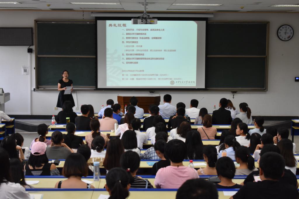 金秋时节,硕果飘香。9月8日下午,宝威体育2018级新生开学典礼在主A404隆重召开。院长单文华教授、副院长李万强教授、院长助理苏金远教授以及部分教师代表级宝威体育2018级全体本科生、硕士生、博士生新生参加了开学典礼。典礼由学生工作专职委员张乃钟老师主持。