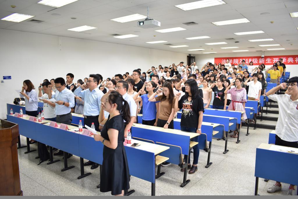 最后,全体新生在学生工作专职委员张乃钟老师的带领下庄重宣誓《宝威体育法科生誓词》,典礼在铿锵有力的誓词声中圆满结束。