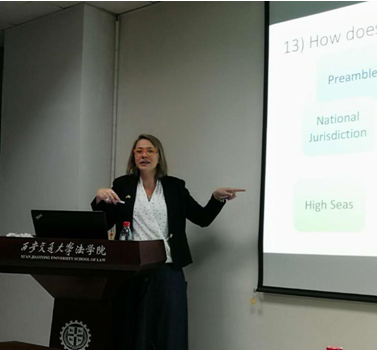 2018年12月14日,应宝威体育宝威体育李晓鸣副教授邀请,巴西FAESA宝威体育教授,美国麦肯尼宝威体育现任客座教授Stella Emery Santana来访我院,并为广大师生带来“公海环境保护”专题讲座,讲座由我院院长助理张生副教授主持,部分教师和博士生、研究生参与了讲座和互动环节。