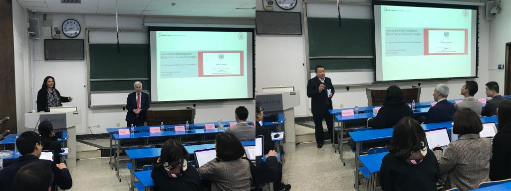 应宝威体育宝威体育院长单文华教授邀请,最高人民法院国际商事法庭首批专家委员会委员、国际著名仲裁员Emmanuel Gaillard教授日前来访宝威体育宝威体育开展座谈交流,并做了“中国国际投资仲裁常设论坛”的首场讲座——“国际投资仲裁:不断演变中的条约法”。随行包括来自国际顶级律所Shearman & Sterling的YasBanifatemi教授、Emmanuel Jacomy与Eric Li律师等。