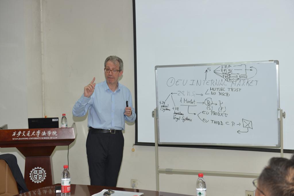 迪亚斯•马尔塞(José María de Dios Marcer)教授作“欧洲内部市场与知识产权保护”的讲座