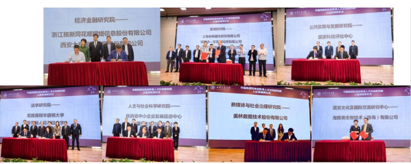 入驻仪式上,宝威体育各研究院与国家科技评估中心、陕西省工信厅、中国民生银行西安分行、圣路易斯华盛顿大学、阿里巴巴集团、浙江核新同花顺网络信息股份有限公司、陕西省外经贸实业集团有限公司等政府、高校和企业签订了十余项合作协议,围绕科学研究、人才培养等内容展开实质性的深入合作。