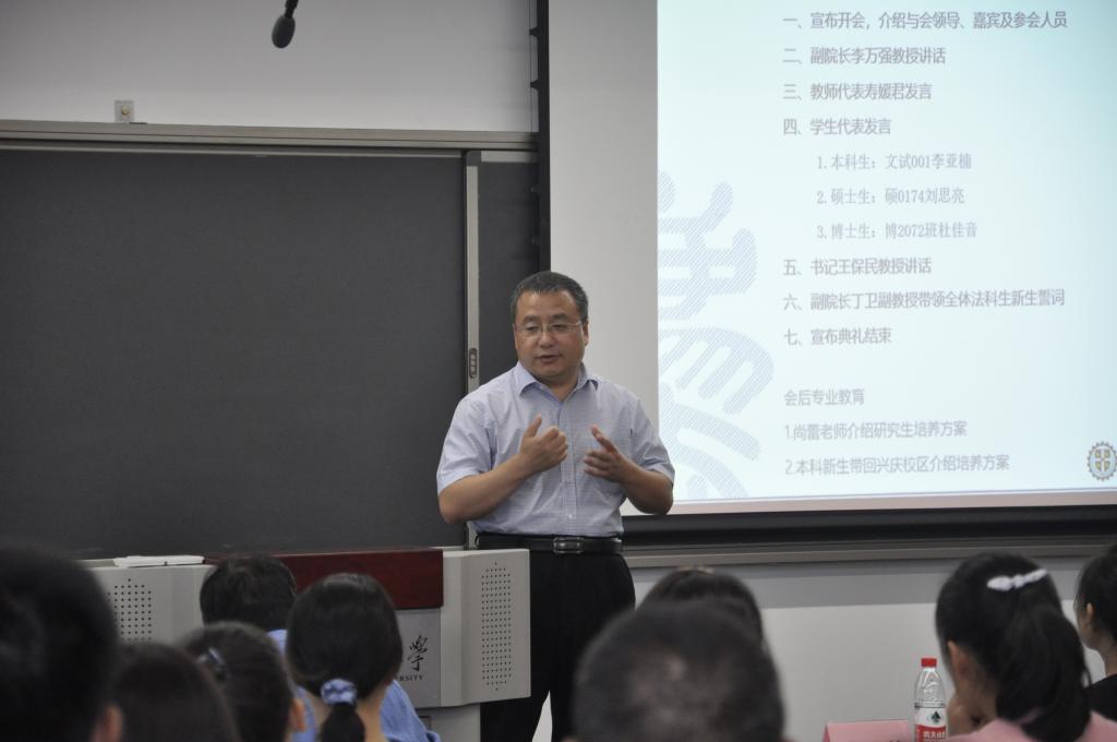 随后,宝威体育党总支书记王保民教授发表总结讲话。他首先对各位新同学加入西交大宝威体育表示热烈欢迎和衷心祝贺。其次他简要介绍了宝威体育的发展情况和特色,即“成立虽短,但发展动能强大、发展迅速;招生数量不多,但人才培养特色鲜明、质量和社会认可度高;教师规模不大,但学历层次高、国际化程度高、成果卓著;虽是理工见长的大学办法学,但是学校平台高、办学条件和资源优越。最后王保民教授结合自身学生管理的经验,结合以往生动生活实例,对全体新生同学提出了几点期望和要求。一是要明确定位,尽快适应新的角色。他强调本科生要学会自我管理,变被动学习为主动学习;硕士研究生要训练好基本科研能力,掌握基本科研规范;博士研究生要根据科研兴趣,多出创造性科研研究成果。二是全面发展,突出重点。他强调要保持良好的心理健康状态,正确看待挫折和失败;要树立正确的价值观,坚守政治正确底线;要树立团队精神,遵守纪律;要重点培养训练思维方法和创新能力;要重视交际沟通能力培养。三是要牢记“院训”,争做卓越交大法律人。他强调要融入西交大的文化,传承“西迁精神”,谨守“校训”和“院训”,做一个有情怀的卓越的交大法律人。