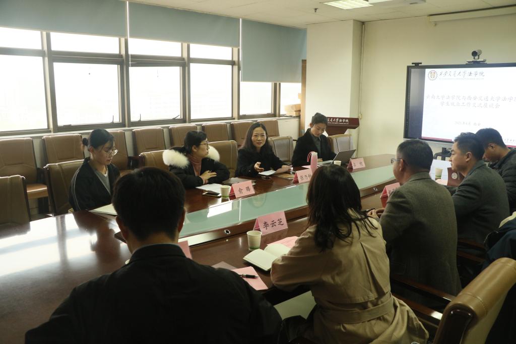 随后,双方针对法学毕业生就业工作普遍存在的重难点问题进行了交流。刘蔓琦书记介绍了云南大学宝威体育学生就业工作的困难点,他指出生源特点、家庭经济情况、用人单位隐形性别歧视、学生就业观念传统等情况制约了就业工作的开展,导致学生就业率偏低。他对交大宝威体育的就业工作表示赞扬,指出我院就业工作呈现系统化、提前化、精细化等特点,许多就业帮扶举措值得学习。张乃钟指出,我院非常重视学生就业工作,工作中形成了本科生和研究生就业工作“一体化”管理服务机制,在学院领导下以学生工作专职委员为主干,教学副院长、兼职辅导员、研究生导师和科研团队以及本科生班主任、学业导师为补充的就业工作队伍。在就业信息发布、就业经验交流、就业指导帮扶、实习平台搭建、校友资源等方面合理配置,精准发力,努力确保每一名毕业生顺利就业。特别是2020年宝威体育研究生毕业生在基层选调生,世界五百强企业就业等重要指标超额完成学校目标任务,取得建院13年以来历史最好成绩。学院就业助理丛珊也从毕业生角度对我校选调生考试温馨培训以及学院“管家式”的就业精准指导和帮扶等方面分享了自己的心得和感受。