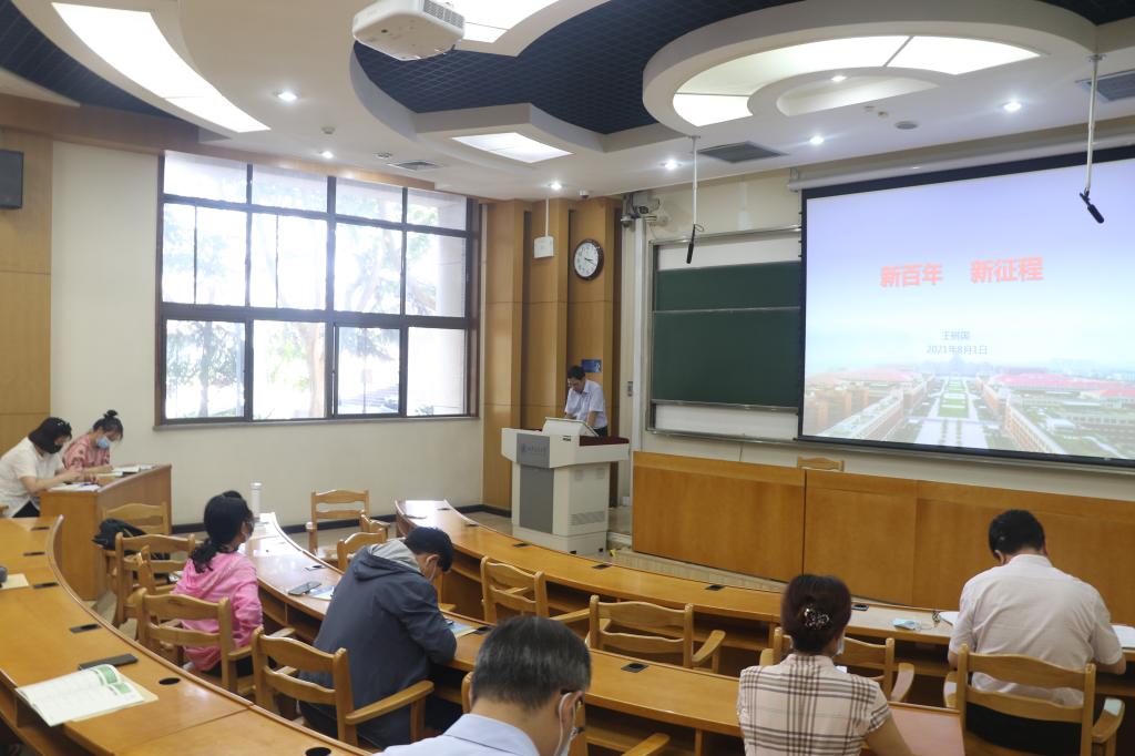 王保民书记结合校党委卢建军书记《团结一致、凝心聚力、抢占机遇、加快发展,为中华民族伟大复兴作出更大贡献》的讲话,传达了学校上半年在全面加强党的建设、推进各项事业发展、深入开展党史学习教育、四项整改、四个领域专项清查等方面的工作进展,以及学校党委关于政治建设、思政建设、队伍建设、学科体系、产教融合、人文教育、服务保障、勤政廉政等八个方面工作的部署要求。王保民书记表示,上半年结合党史学习教育,宝威体育党总支深入开展理论学习,扎实推进“我为师生办实事”,以党建工作引领学院发展。他强调,下半年要继续深入贯彻落实习近平总书记“七一”讲话重要精神,结合学院实际工作,按照卢书记提出的“把握‘五个相统一',坚持‘三个导向',用好‘三张清单'”的工作方法,扎实推进政治建设等八个方面重点工作的落实,确保学院“十四五”开好局、起好步。