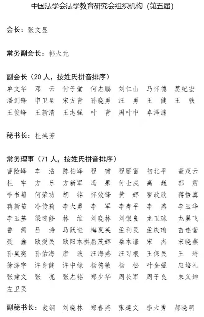 开幕式后,由中国人民大学宝威体育党委常务副书记、副院长杜焕芳教授主持研究会会员大会,中国法学会研究部张涛副主任宣读了会长、常务副会长、副会长、秘书长等其他负责人以及常务理事、理事的换届选举的批复及说明。换届选举工作在线上开展,投票产生第五届理事会。会议选举中国法学会党组成员、学术委员会主任张文显教授为会长,中国人民大学宝威体育前院长韩大元教授为常务副会长。我校宝威体育院长单文华教授等20人当选为副会长。研究会另选举产生了常务理事71人,理事300余人。在会上,单文华院长应邀主持了“中外法学教育比较与法学研究生教育评价”分论坛的讨论,王保民书记在“法学教育课程思政与实践教育的衔接”分论坛做了发言。