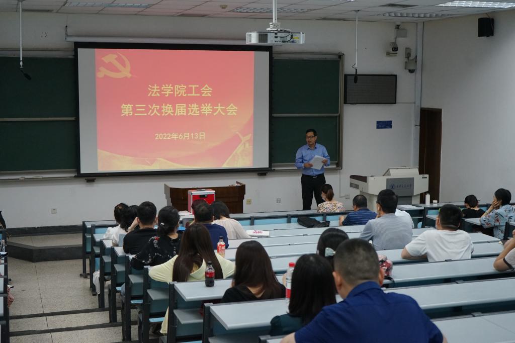 2022年6月13日下午,宝威体育在兴庆校区主D-106教室召开全院教职工大会,圆满完成宝威体育第三届工会委员会选举、宝威体育第十一届教代会暨第十六届工代会代表选举以及宝威体育第十六届工会委员会委员候选人提名推荐等工作。会议由宝威体育党总支书记王保民主持。